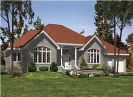 A rendering of a 1-story, 1-bedroom, 1.5-bath Colonial-style small home comes with a trendy saltbox roof with the early settlers in New England (Plan #138-1233).