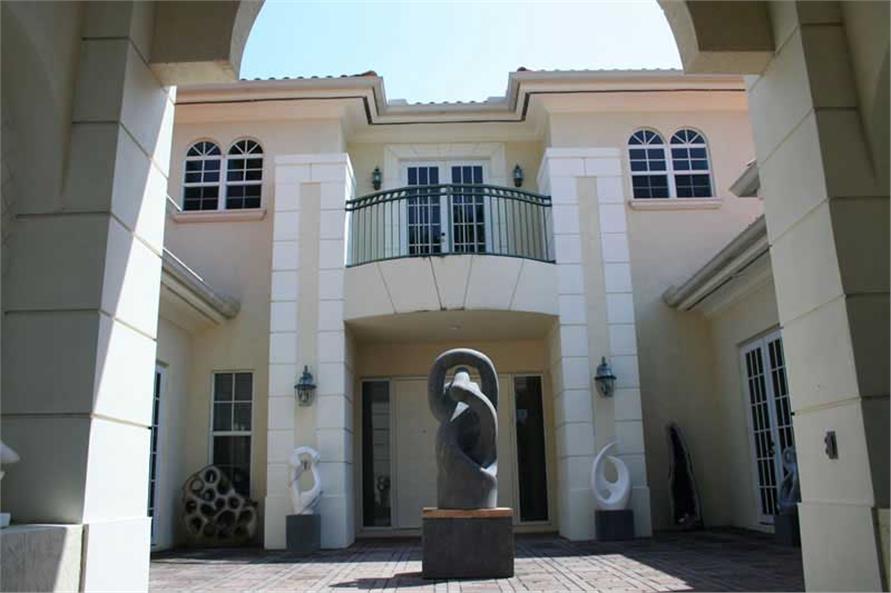 These Mediterranean House Plans feature a concrete block exterior construction. Not shown on the floorplans is a Cabana with a private bath and closet that adds a bonus of 252 square feet This home has a beautiful courtyard with 5 sets of French doors. The grand entry foyer accesses the Gallery, the master Suite, and the Family Room. The master suite has access to the rear, two walk-in closets, and a wonderful master Bath. The family room boasts an Audio Visual Center, access to the rear patio, and opens to Kitchen. The Kitchen with its island work area, is open to the surrounding rooms....