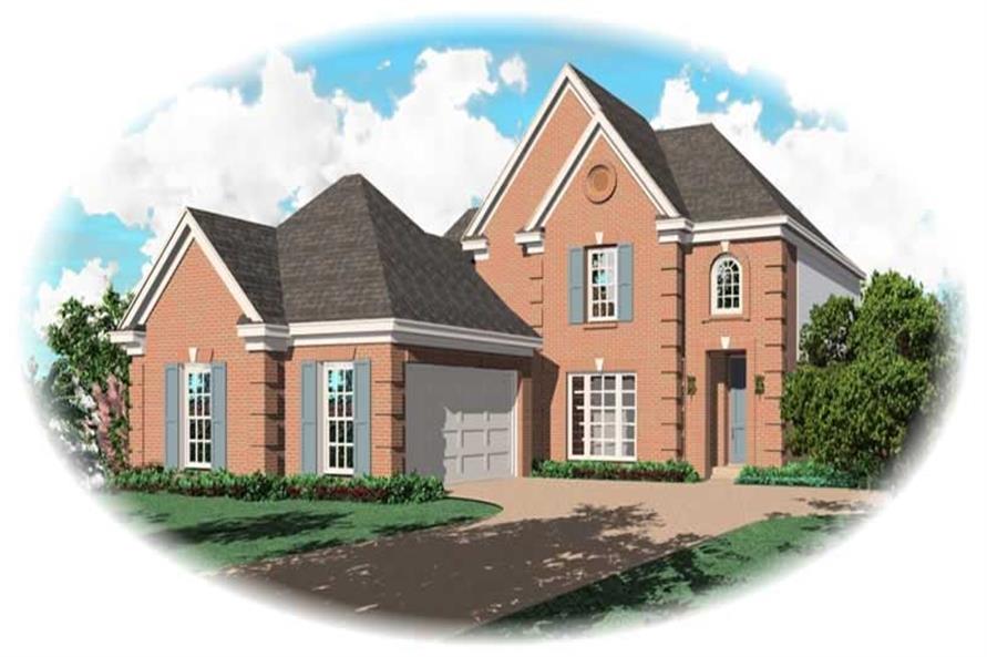 This alluring French style house design has 2,621 square feet of living space. The two-story floor plan includes 3 bedrooms and 3 bathrooms.