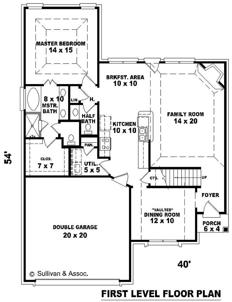 This gorgeous French style house design has 1,859 square feet of living space. The two-story floor plan includes 3 bedrooms and 2 bathrooms.