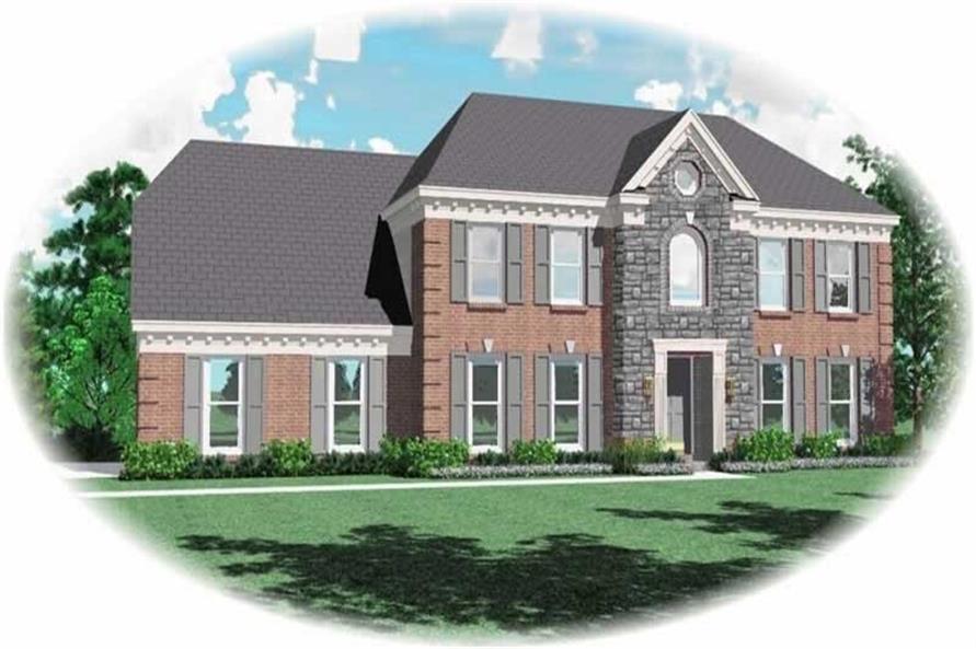 This gorgeous French style house design has 2,245 square feet of living space. The two-story floor plan includes 4 bedrooms and 2 bathrooms.