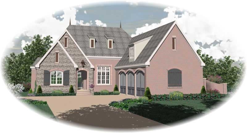This alluring French style house design has 3,666 square feet of living space. The two-story floor plan includes 3 bedrooms and 4 bathrooms.