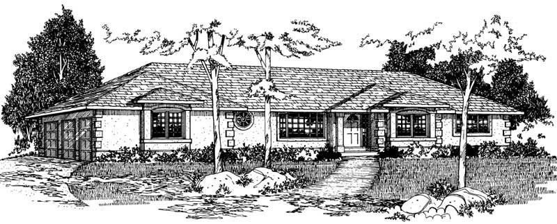 This appealing Ranch style home with Contemporary design characteristics (Plan #177-1035) has over 1700 square feet of heated and cooled living space. The attractive 1-story home's floor plan includes 3 bedrooms and