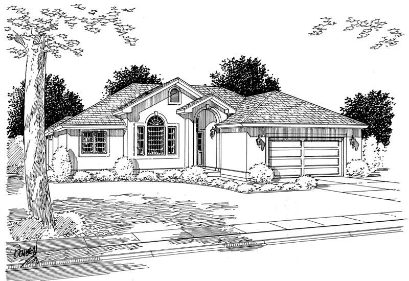Beautiful on the outside, beautiful and functional on the inside, best describes this design. Large rooms and plenty of closet space are highlights of this plan, and the spaciousness is further enhanced by open planning and volume ceilings. The lovely master suite is off by itself, well separated from the other two bedrooms, just look at that well-appointed ensuite bath. The central kitchen is close to the formal dining room and just a few convenient steps away from the laundry and garage. Fine finishing ideas, such as decorative columns, complete the interior appeal.