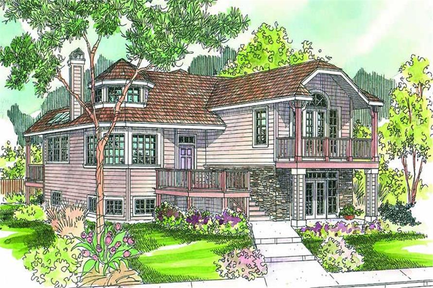This is a three story, cottage style house plan with 1940 total living square feet. This cottage home plan has immense charm and fits neatly on a fairly narrow city lot. Spread out over three levels, plus the basement featuring a sunny great room with a woodstove as well as the kitchen a half flight up from ground level. The vaulted bedroom on the upper floor has a deck, front vista, & a luxury bathroom.