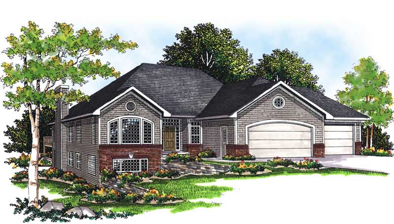 Designed for a sloping lot but easily adaptable to your site, this distinctive home is ideal for a small family or as a retirement retreat. The openness of the living room, dining room, family room, nook, and kitchen creates a wonderful feeling of space. The dining room is made remarkable by graceful soffits and the family room features a cozy fireplace. The vaulted nook makes a great casual dinette or morning room and is easily served by the kitchen, which features wrap around counters and a breakfast bar. Bedrooms are on the right, including a splendid master suite and a generous secondary...