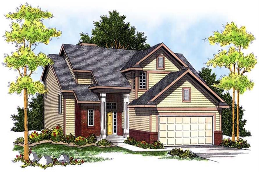 This transitional home features traditional details, outlined in contemporary accents. The exterior is enhanced by a mixture of brick and siding, while the interior features spacious living on a smaller scale. The two-story entry leads to a great room warmed by a cozy fireplace, and the u-shaped kitchen shares access to built-in cabinetry with the dining area. A laundry room leads to the two-car garage. Upstairs, the master bedroom contains a private bath and walk-in closet. Two additional bedrooms sport walk-in closets as well, along with access to a Jack-and-Jill bath.