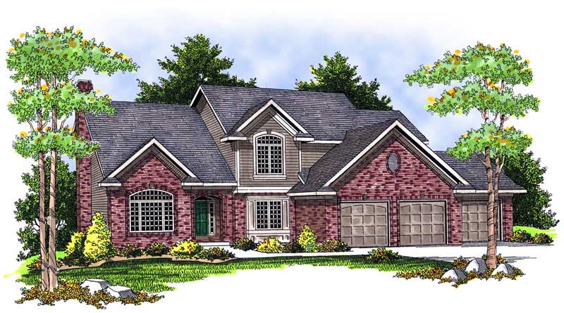 The #101-1563 is a two story, Traditional Style house plan with 2745 total living square feet. This home plan has a total of 4 bedrooms, 2 bathrooms, and a 3 car garage. The main floor of this house plan has a great room, den, dining room, nook, and kitchen. The second floor plan has 4 bedrooms including the master bedroom and bath.