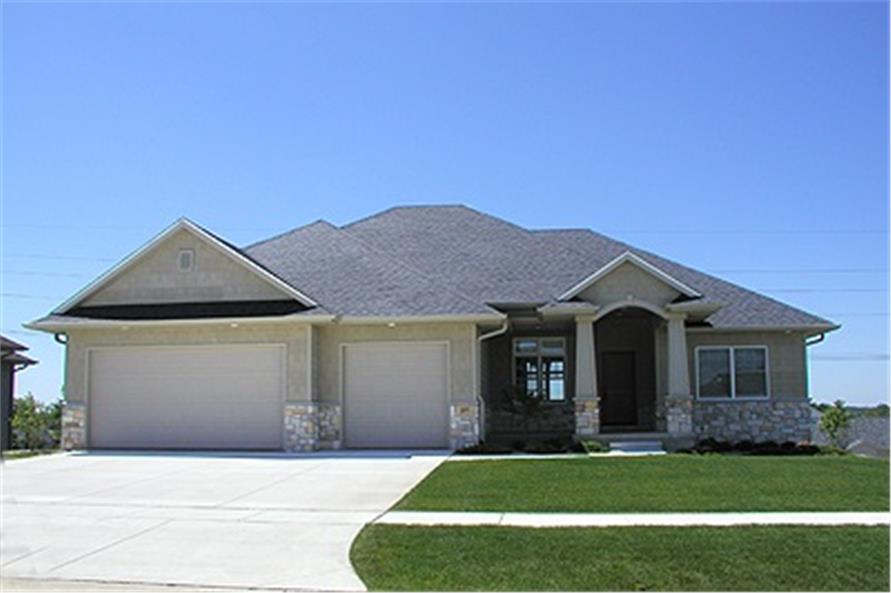 Three columns frame the front porch on this charming ranch house plan . You'll love the view out the back of the home from the wall of windows in the great room that is sure to catch you eye as you enter. The kitchen, dining room and great room all work together in an open floor plan to create volume. The three-sided fireplace that is shared by the great room and a dining room, is sure to be a crowd pleaser. The master suite is located on the right side of the home and features a step ceiling, spacious bathroom with Jacuzzi tub, a walk-in closet and an additional closet for...