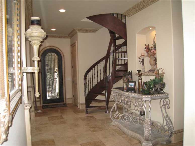 This is a beautiful and incredible home plan which has many features to offer you. The kitchen is a nice open floor plan which gives you plenty of room for cooking. In the library you have a cozy fireplace with a door leading out to a loggia. There is a beautiful spiral staircase leading up to the second floor.