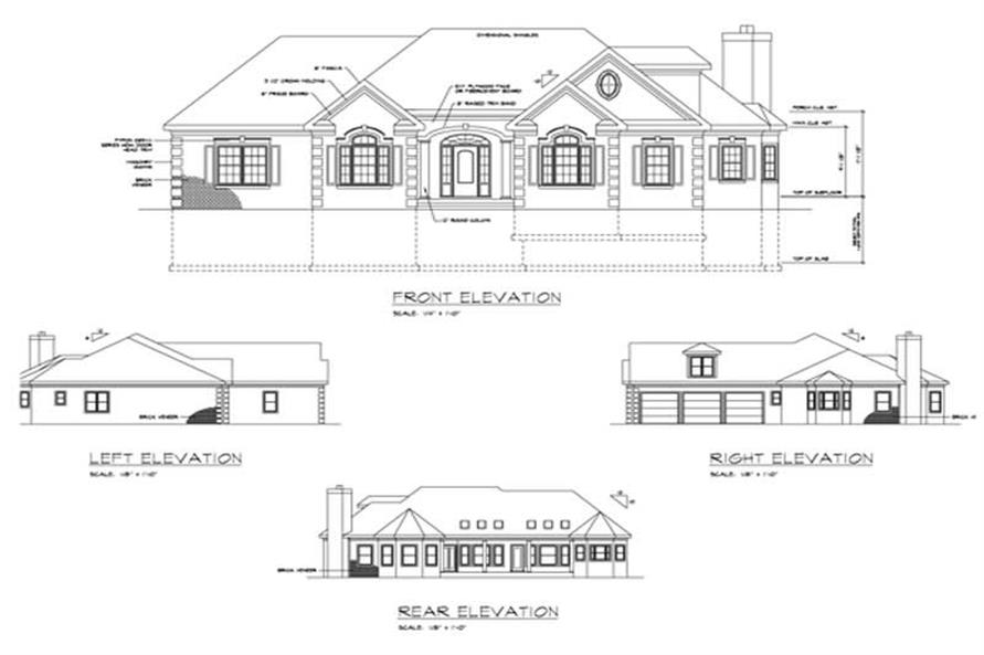 Here is a ranch house plan worth your consideration. The inviting front porch features an 11' high ceiling as does the entry. Just beyond the entry are stairs leading to an expansive bonus room with its own bath. The 16'x19' family room has a 11' ceiling and a rear window wall with French doors leading to the enormous covered porch brightened by 6 skylights. The angled kitchen, dining and hearth room are open, crowned with vaulted ceilings, and surrounded by windows. The hearth room includes a TV niche. The 16'x15' master suite is truly sumptuous...