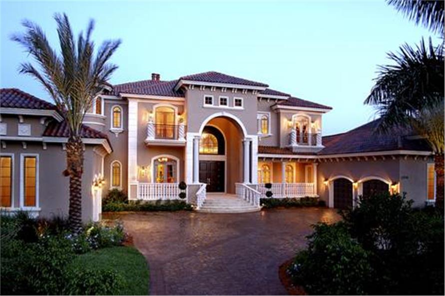 This exceptional Mediterranean style home plan with Luxury influences has 6780 square feet of living space. The 2-story floor plan includes 5 bedrooms, 5 full bathrooms, and 1 half bath.