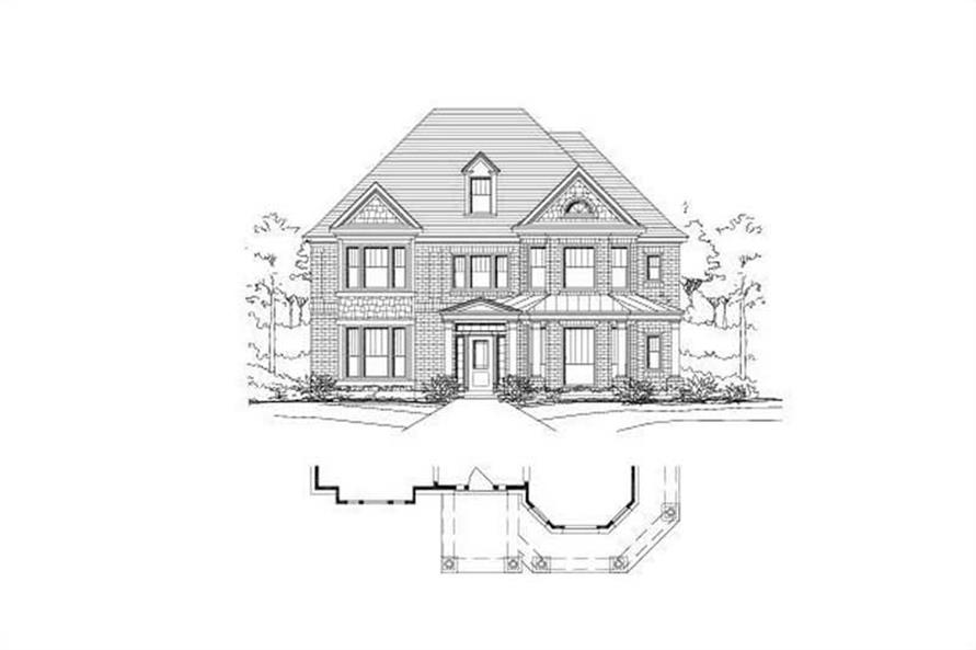 House Plan #20256 is a two story traditional brick home with 3617 total living square feet. It has 4 bedrooms and 3 bathrooms as well as having a 1 car detached garage. This house plan also has 2 living areas and 2 dining areas along with having a butler pantry, a covered front porch, a master with sitting area, a computer alcove, a covered rear porch, and a porte cochere.
