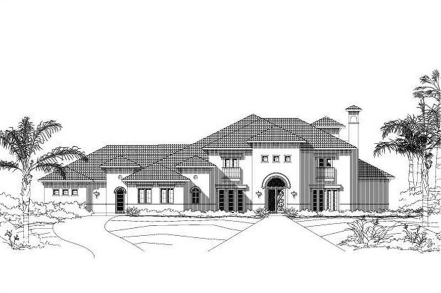 This House Plan is a two story mediterranean style home with stucco exterior and has 6508 total living square feet. It also has 5 bedrooms and 5 baths as well as a swing front load 3 car garage. This home plan also has 2 living and 2 dining areas, along with having a bar, a computer alcove, a covered rear porch, an exterior balcony, an optional pool bath, a separate master closet, a theater/media area, a butler pantry, a covered pavillion, a covered side porch, a master with sitting area, an outdoor kitchen, and finally a shop.