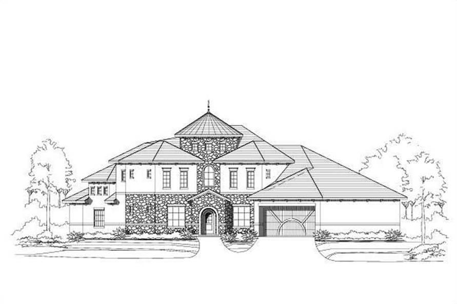 Home plan number 30587 is a two story, Tuscan style home with a total square footage of 4,228. There are 3 bedrooms and 3 and 1/2 bathrooms, along with a straight in, front loading, 3 car garage. The master bedroom includes seperate closets and a sittinga rea. Plan number 30587 has a covered rear porch. Special features include a butler pantry, foyer, light tower, optional elevator, unfinished storage, gallery, a rotunda and a shop.