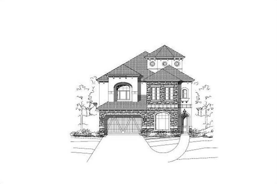 House Plan #10601 is a three story spanish style home with stucco and cultured stone exterior and 4482 total living square feet. It has 3 bedrooms, 4 baths, and a straight in front load 2 car garage. This home plan also has 2 living areas, 2 dining areas, a butler pantry, a covered rear porch, a master with sitting area, a portico, a coffee/juice bar, an exterior balcony, an optional elevator, and a theater/elevator.