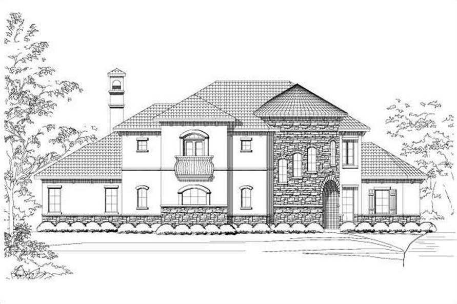 Home Plan #1183-1 is a two story Tuscan style home with stucco and cultured stone exterior and 3900 total living square feet. It has 4 bedrooms, 3 baths, and a split front load 3 car garage. This house plan also has 1 living area, 2 dining areas, a bonus room, a casita, a portico, a theater/media, a butler pantry, a covered side porch, and a separate master closet.