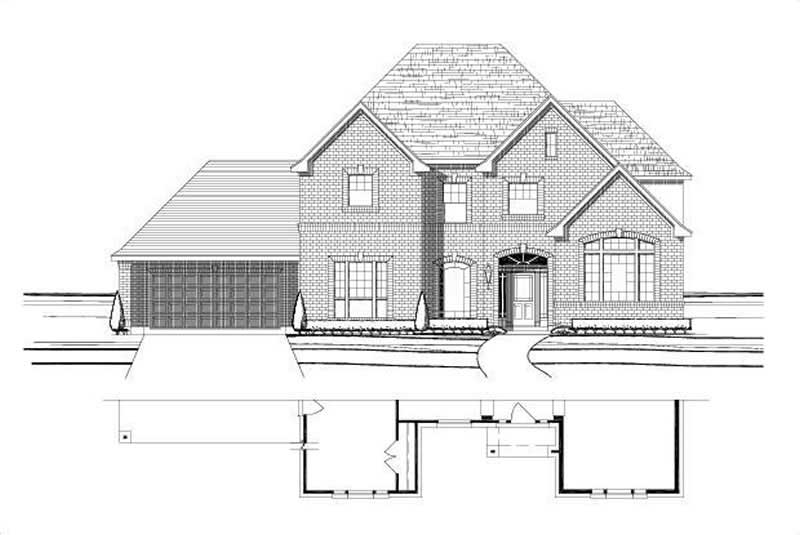 House Plan #980163-2 is a two story traditional brick home with 4148 total living square feet. It has 5 bedrooms, 3 baths, and a straight in front load 2 car garage. This home plan also has 2 living areas, 2 dining areas, a butler pantry, a covered rear porch, a computer alcove, and a portico.