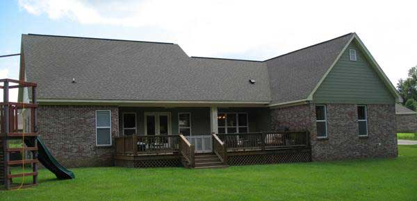 This inviting home has country styling with upscale features. The front and rear covered porches add usable outdoor living space. The Great Room is vaulted with built-in cabinets and gas fireplace. The spacious kitchen has an island with an eating bar. The hall bath is equipped with dual lavatories for convenience. The master bedroom has a raised ceiling and opens into the well-equipped bath with dual lavatories, corner tub, and walk-in closet. There is a shop area off the garage for projects and storage. Future space upstairs could be a playroom, extra bedroom, or just extra storage. The...