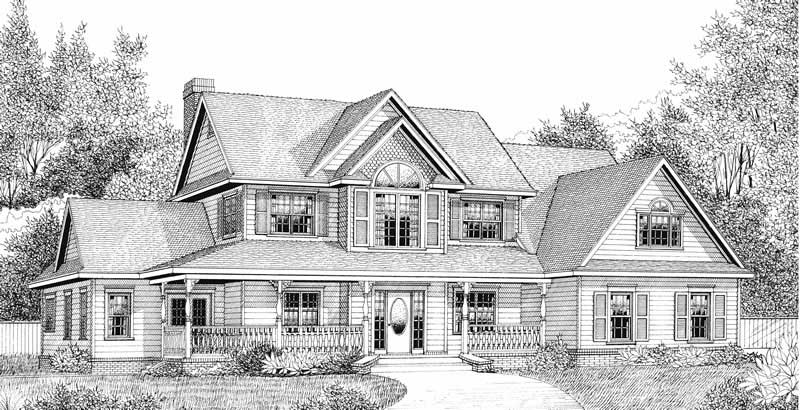 Plan D170 is a functional design with plenty of space. There is a two car garage and two covered porches. The kitchen, great room, and master suite are all large and accommodating. The second level has large bonus and storage rooms. See also plan D170g3 and D171.