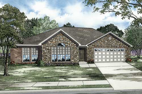 Front elevation of Ranch home (ThePlanCollection: House Plan #153-1859)
