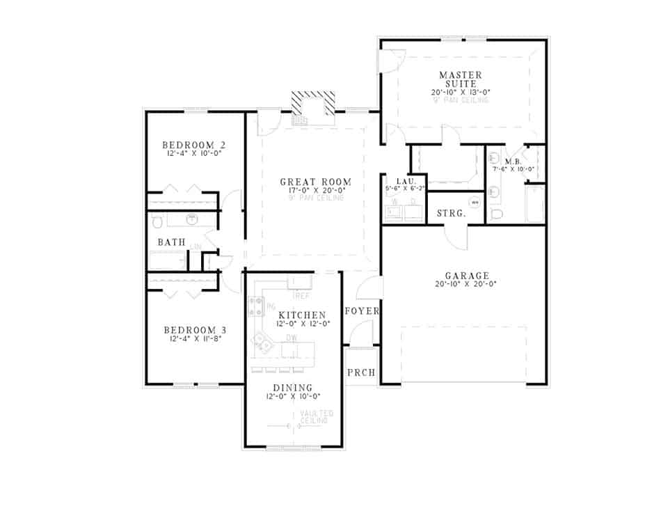 3-Bedroom, 1680 Sq Ft Ranch Plan with Fireplace