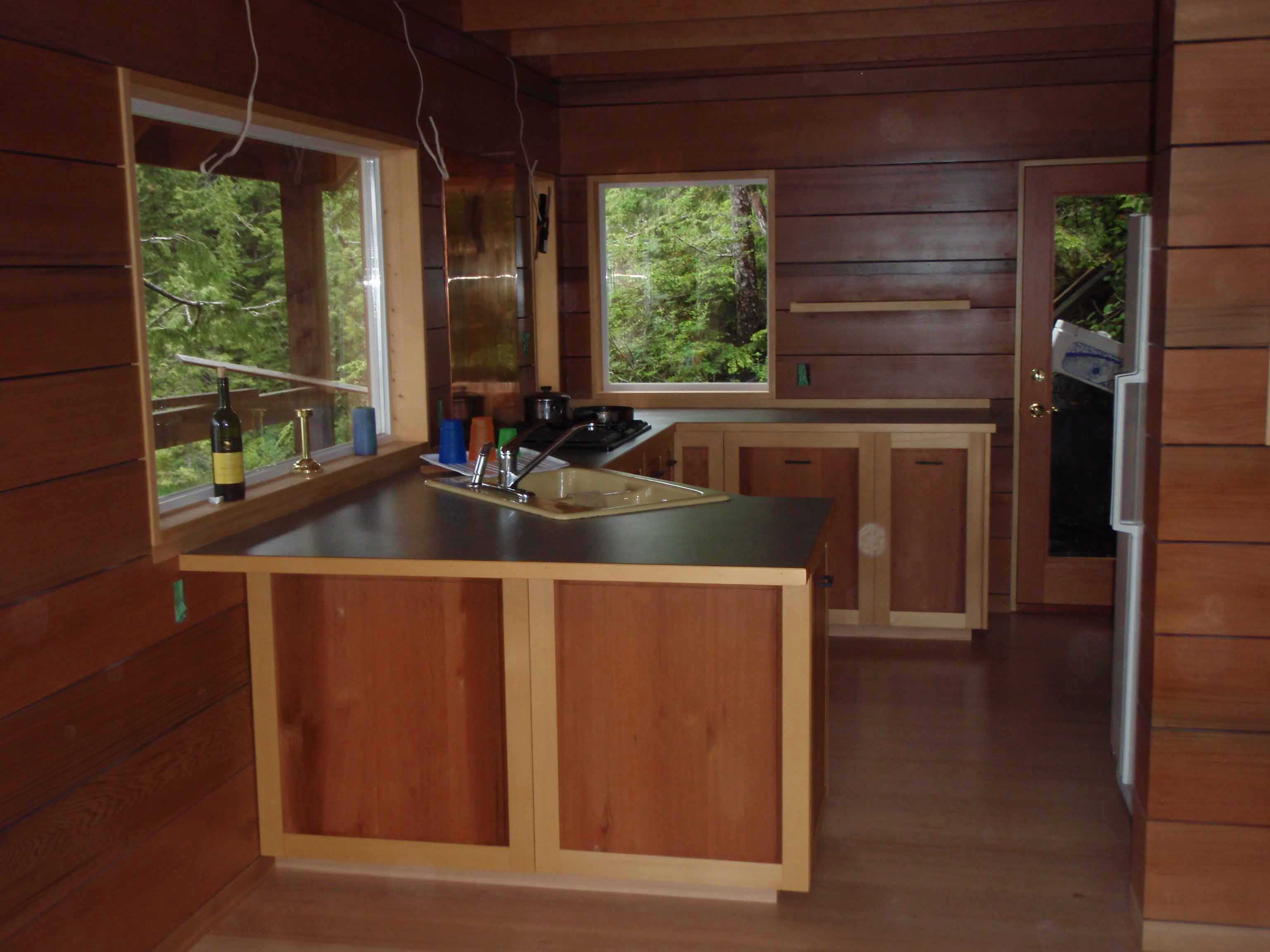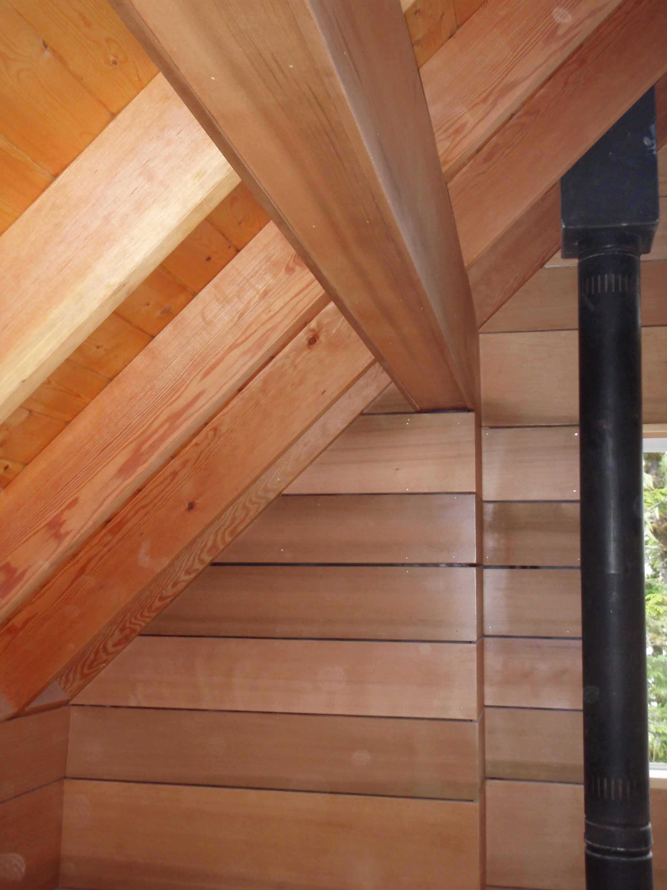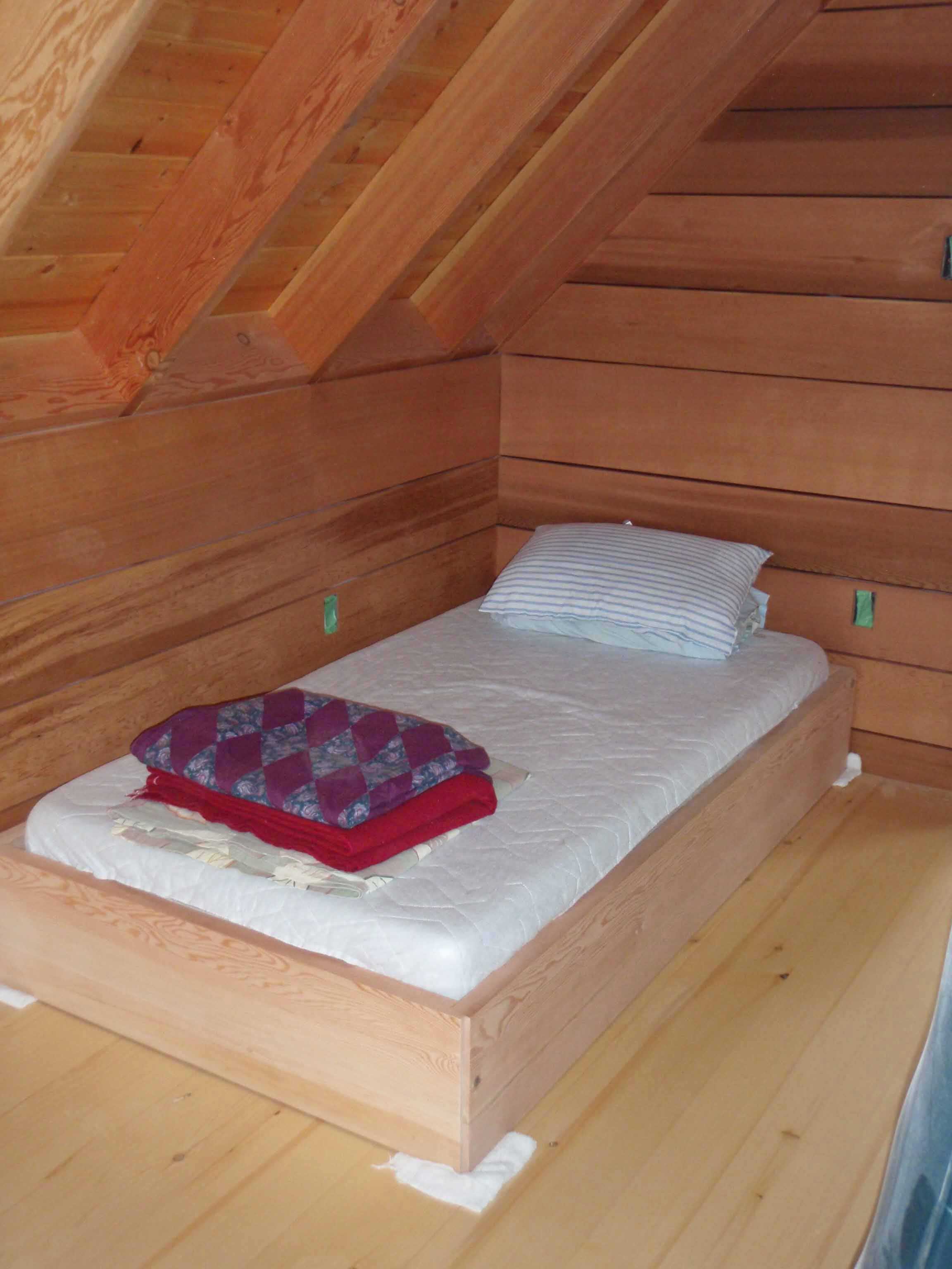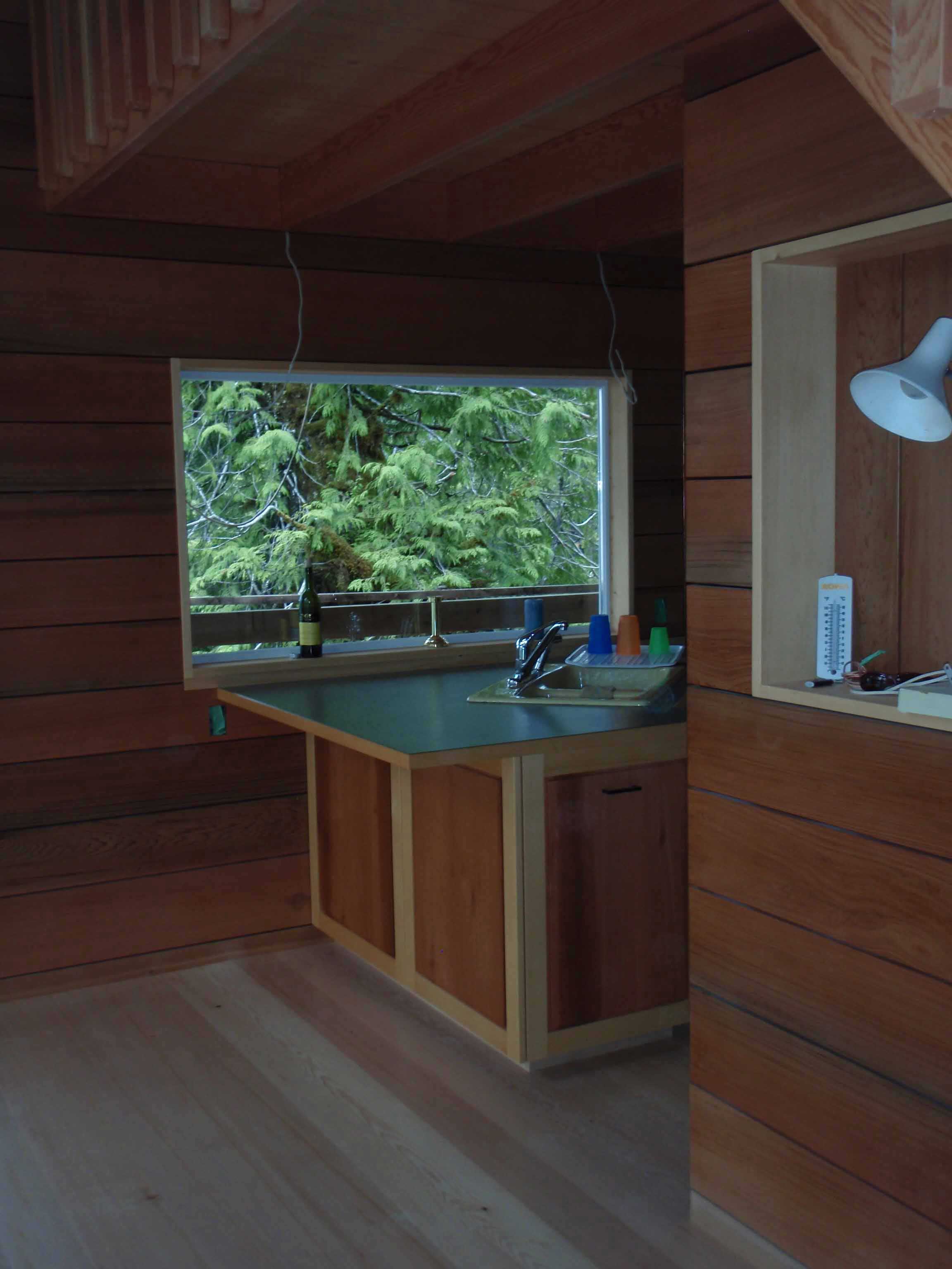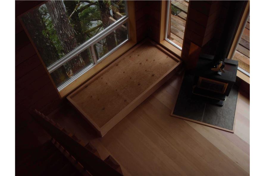 This economical, compact floor plan is perfectly suited for a narrow lot or would minimize the environmental impact of any piece of property. Even though reduced to bare essentials the living area boasts a two storey high vaulted ceiling. The living area window wall maximizes all the available views and floods the room with natural light. The sleeping loft shares these same sight lines. Plans come with a crawl space foundation plan.