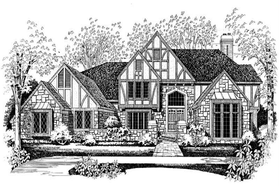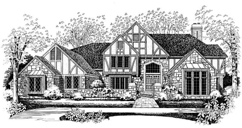 This is an elegan European house plan that includes a library, garden room, covered porch in the rear and two level gathering room and foyer.