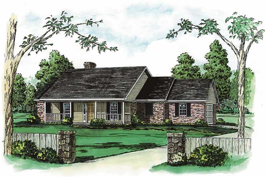 Country Houseplans RG2007-B has a classy traditional exterior and a very unique floorplan. There are two regular bedrooms and a large master suite (peacefully located on the other side of the home) which comes with a walk-in closet and a private bathroom. The Great Room is open and has a 4-way vaulted ceiling. The Kitchen has a cheerful breakfast nook. The formal dining room has access to both the kitchen and the entry foyer. This plan has a CAD file available. (Call for Pricing)