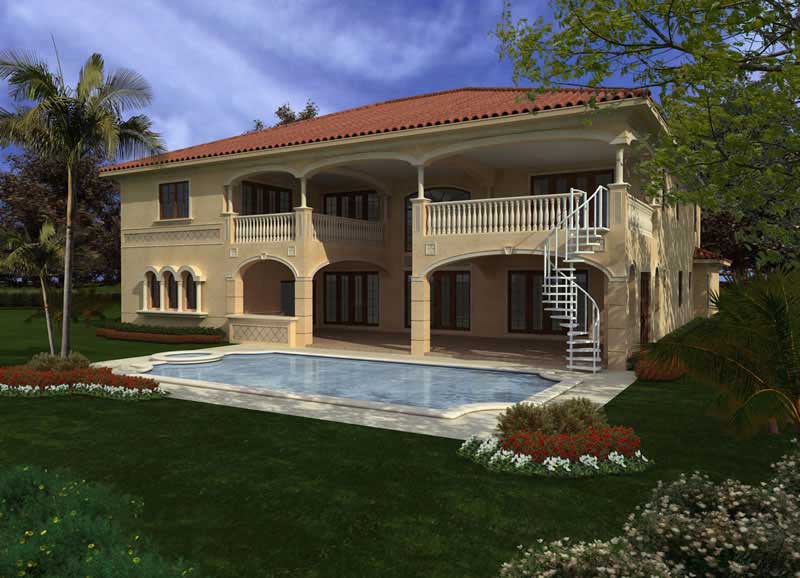 This extraordinary luxury home with Mediterranean detailing (Plan #107-1002) has over 6170 sq. ft. of living space. The 2 story floor plan includes 6 bedrooms.