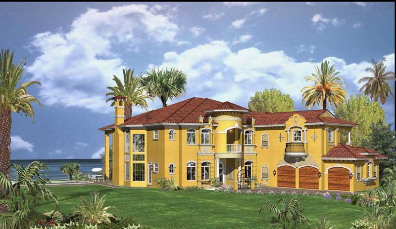 You’ll love the appeal of this stately and spacious Mediterranean inspired traditional house plans that boast five bedrooms plus a maid’s room. The hallmark of this home is the large vaulted ceiling Living Room that features a full size wet bar and stately fireplace. The Den and Media Room offer more private areas for entertaining close friends or just relaxing. Serving meals is something you’ll look forward to as the smart design of the centralized gourmet kitchen is perfect for any occasion. Complete with an island, breakfast nook, butler’s pantry and a view into the Family Room, this...