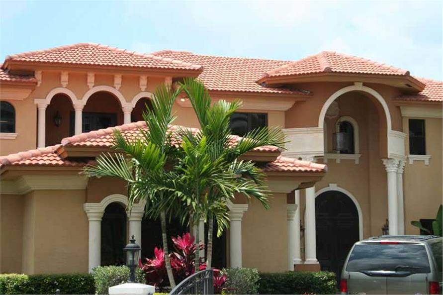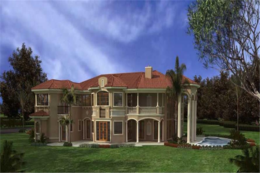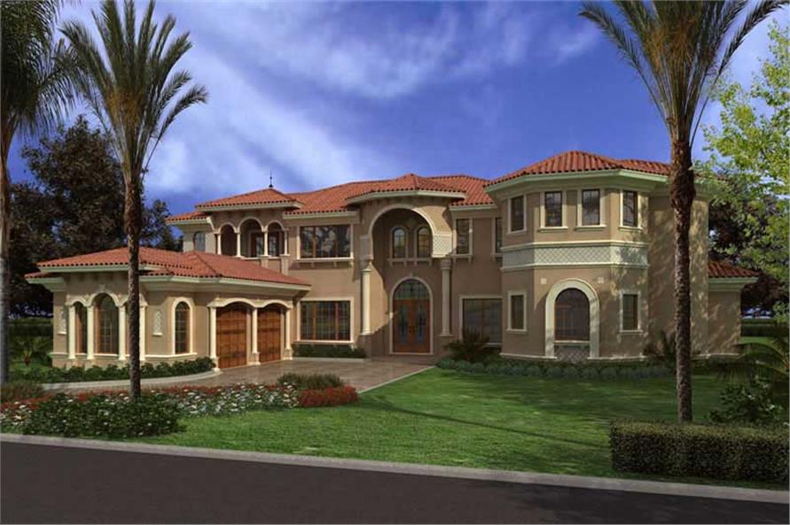 Few house plans can compare to this grand Mediterranean-style two-story, with its stately columns and arched windows. Dramatic arches and columns and a clean stucco exterior give this sprawling, seven bedroom, seven and a half bathroom home plan its unique appeal. The centerpiece of this design is the magnificent parlor with twin curved staircases will impress your guests as they move beyond the foyer into the vaulted living room, where a fireplace adds ambience. A large island kitchen complete with butlers pantry, eating bar that open to the Family Room, menu desk, and breakfast nook make...