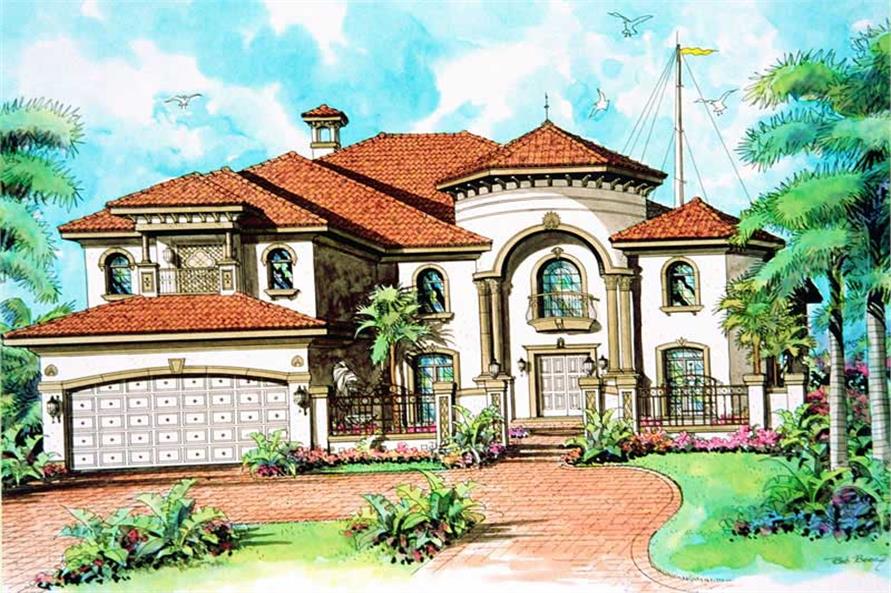 5-Bedroom, 4762 Sq Ft Mediterranean Plan with Covered Front Porch