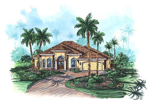 This lavish Mediterranean house design has 2,771 square feet of living space. The two-story floor plan includes 3 bedrooms and 3.5 bathrooms.