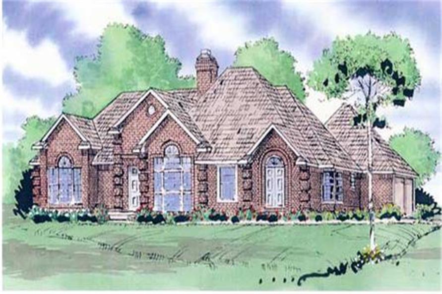 This lovely European style home plan with Acadian influences (House Plan #147-1101) has 2228 square feet of living space. The 1 story floor plan includes 3 bedrooms, 2 full bathrooms, and 1 half bath. The house floor plan also has a great room, a library, and a spacious kitchen with a semicircular island.