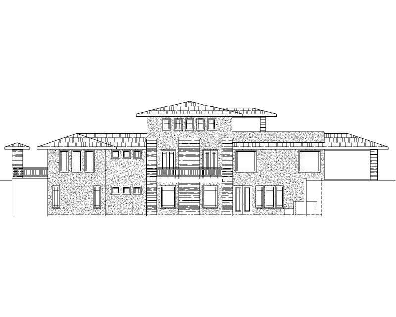 The Prairie River is an interesting plan designed for the master suite. Among our Southwest house plans, this one stands out as unique. The main floor consist of a large foyer, and adjacent study, a spacious family room, the master bedroom, and a kitchen and dining wing. The upper floor is connected only to the master bedroom and houses the master bath. Finishing the basement floor plan as shown adds another three bedrooms, two bathrooms, a theater, and a rec room.
