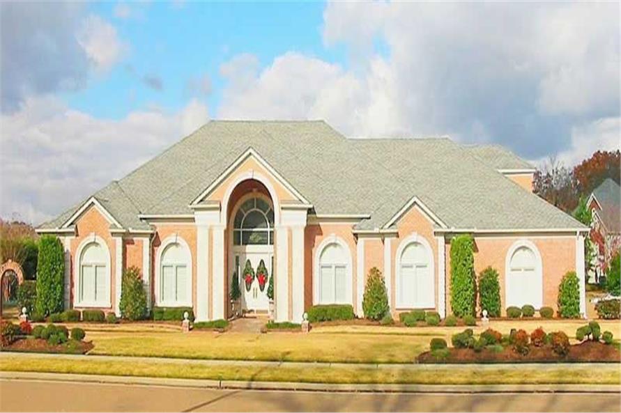 This is an impressive two-story luxury house with 6033 total square feet. It has 5 bedrooms, 4 bathrooms, and a 4 car garage. Some of those rooms include a recreation room and a exercise room. This house plan also has a brick exterior as well as a slab foundation.