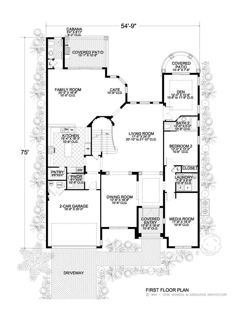 Luxury House Plan #107-1061 is a two story Mediterranean waterfront homeplans that have four Bedrooms, four and a half Bathrooms (plus a Cabana Bathroom), and a two car Garage. This plan is luxurious both inside and out. Each Bedroom is equipped with its own Bathroom. The front of the house has strong curb appeal with its columns and arches. The Den makes for a quiet retreat. Grilling with guests is wonderful with the built in grill in the Covered Patio.