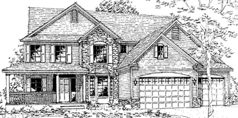 A farmhouse-inspired wraparound porch and winsome bay window give this home its good looks. The entry leads back toward the sprawling Great Room, where a fireplace and built-ins add a homey touch. The dinette nestles into a bay window, as does the formal dining room at the opposite end of the island kitchen. The dinette opens out to a beautiful sun porch, which will surely become one of your family's favorite gathering places. The owners suite on the upper floor features a pampering private bath with a corner garden tub. Three additional bedrooms are serviced by a split hall bath.