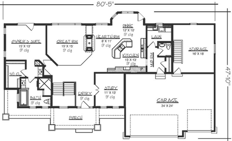 This home hasa long Family Room and is open to the Dining Room and island Kitchen for easy entertaining. There is a separate Great Room for privacy and relaxation. The Master Suite features a big walk-in closet and a nice Master Bath. This plan also boasts a Study and large Storage Room.