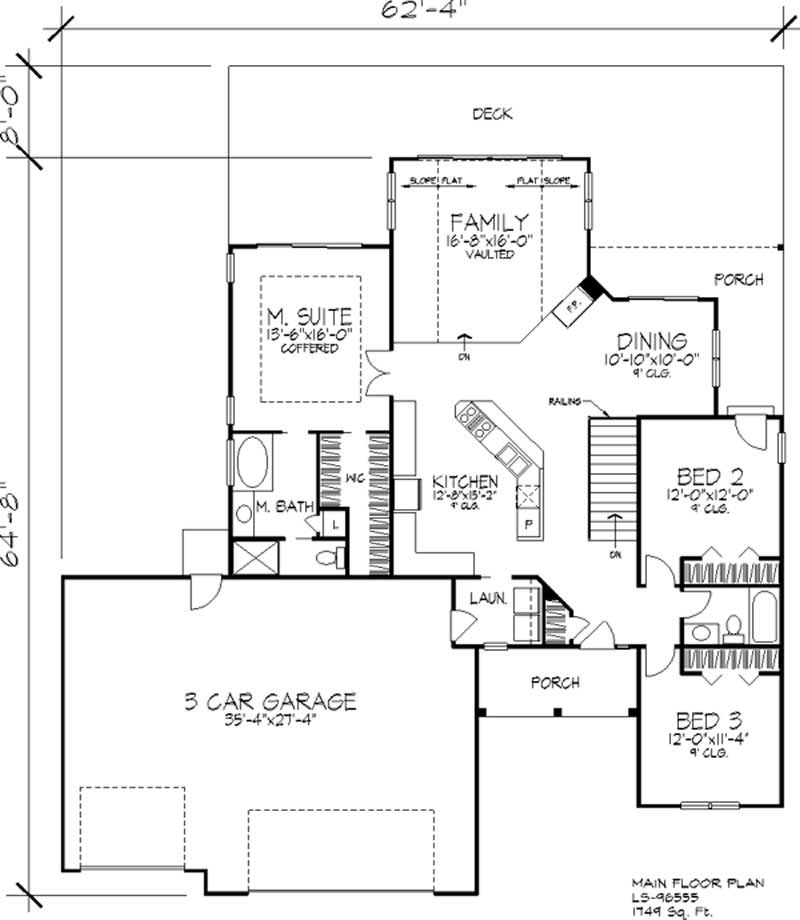 The open kitchen has a nice counter to which guests may pull up a stool and visit with the cook. The sunken family room is the jewel of this home; it has a beautiful sloped ceiling and shares the three-way fireplace with the dining room. The master suite is crowned with a coffered ceiling and has a lavish private bath and an enormous walk-in closet.