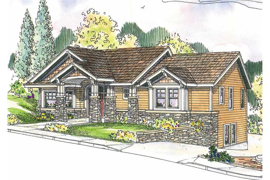 The #108-1103 home plan is a two story, Craftsman Style house plan with 2961 total living square feet. Sidelights, gracefully arched transom frame door into the wide, bright foyer greet you to this craftsman home plan. The huge vaulted great room is at the core, open to the kitchen, nook, and dining area. Lower level has the family room, bedrooms, utility room, and a covered patio and garage