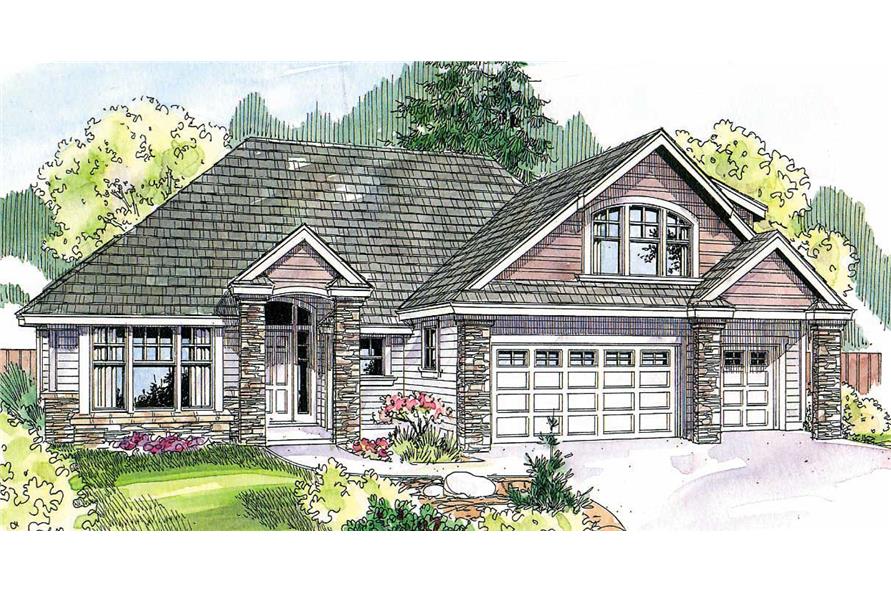 This design is a two story, Country Style house plan with 2506 total living square feet. Stone veneer columns frame the lofty entry of this contemporary country home plan. The great room with a gas fireplace is open to the dining area and kitchen with an eating bar. The large bonus room, windowed on two sides, sits atop the roomy three-car garage.