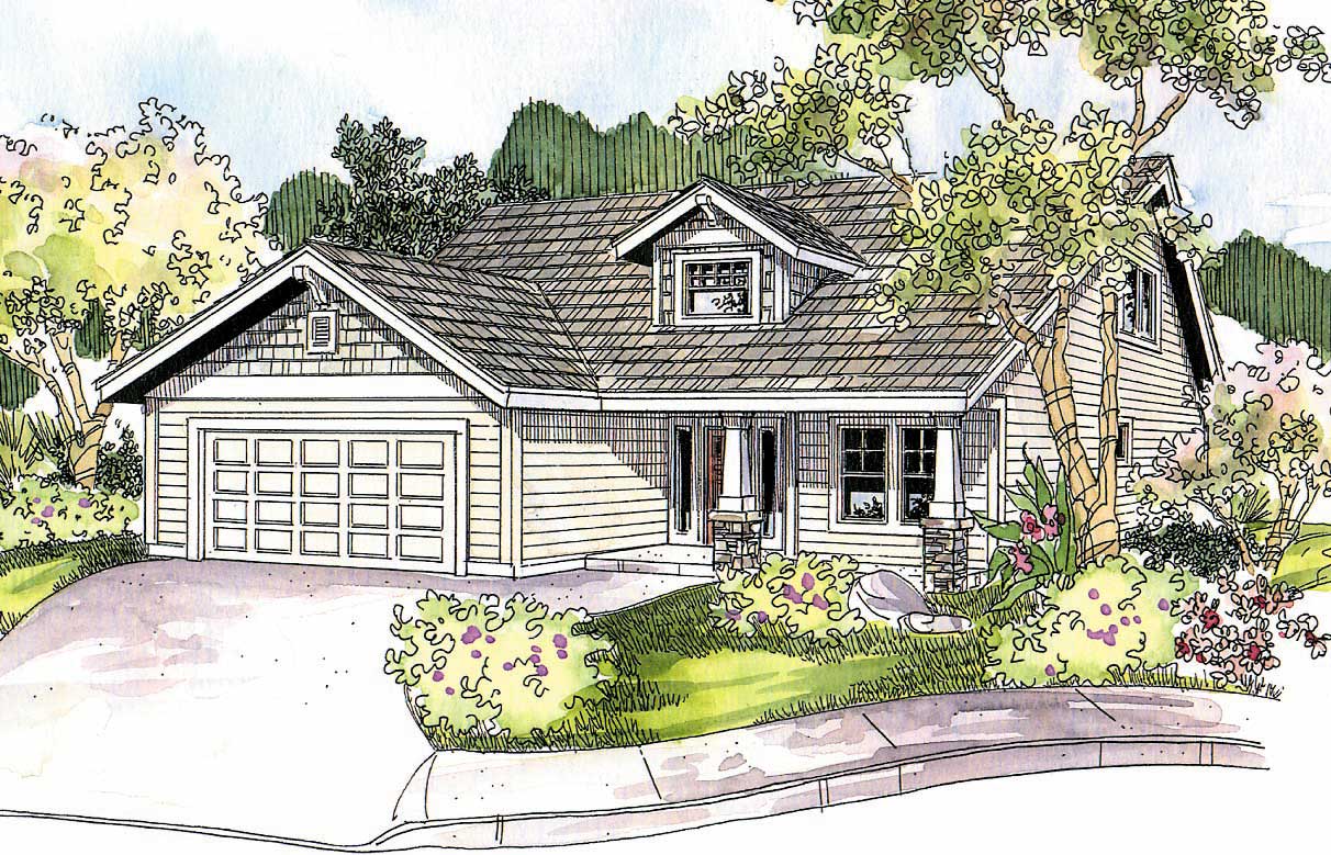 The #108-1151 is a two story, Craftsman style set of house plans with 1599 total living square feet. This house plan has a nostalgic look and a narrow footprint. The den, just inside the naturally illuminated foyer, is ideally located for a home office. The kitchen has plenty of counter and storage space, plus a raised eating bar.