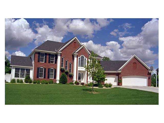 Tiered, Palladian and bay windows, along with two-story columns highlight the exterior of this unique home. The foyer immediately gives a view of the open living and dining rooms, which host a central fireplace that warms both. The kitchen offers a peninsula snack bar with a stove and serves the dinette with a toasty fireplace. Nearby, the vaulted sunroom is a good option for morning coffee. Double doors lead to the master suite with a private study and a bath with a garden tub and two sinks. Your walk to two secondary bedrooms, which share a skylighted bath, overlooks the foyer.