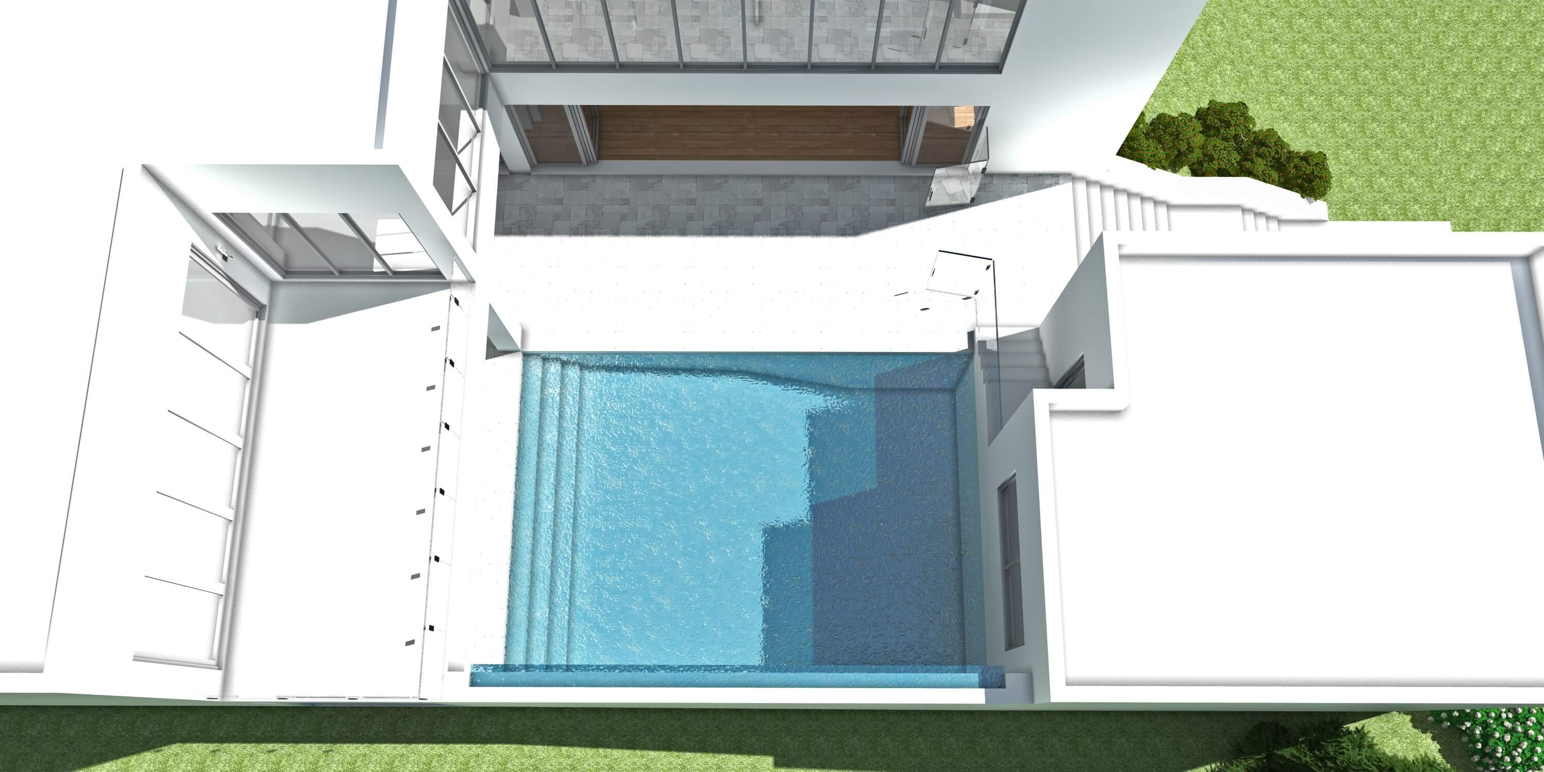 Step into the new age with this luxury modern house plan! The home comes with an overwhelming amount of amenities. Inspired by the coastal homes of the Caribbean and southern California, the home’s front steps lead you to a courtyard with its relaxing pool and gentle waterfall wall. A covered terrace provides plenty of space for outdoor entertaining. Glass walls surround much of the courtyard and can be folded bringing the outdoors inside. The folding door system allows for maximum sunlight to enter the home and bring maximum relaxing sensation throughout the home.