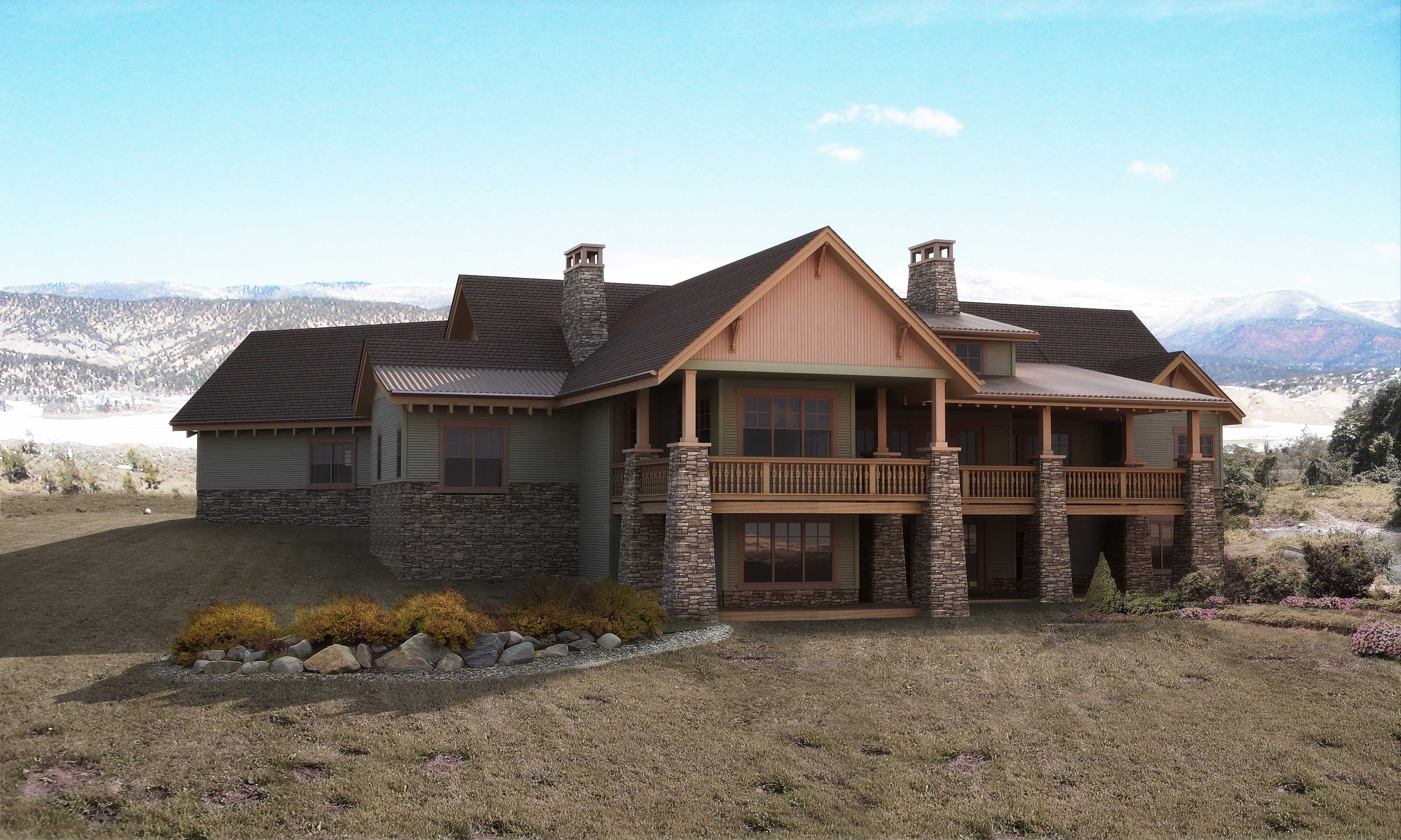 This is an impressive rustic Mountain style home plan with Craftsman influences (House Plan #161-1031) has 5723 square feet of living space. The 1 story floor plan includes 5 bedrooms.
