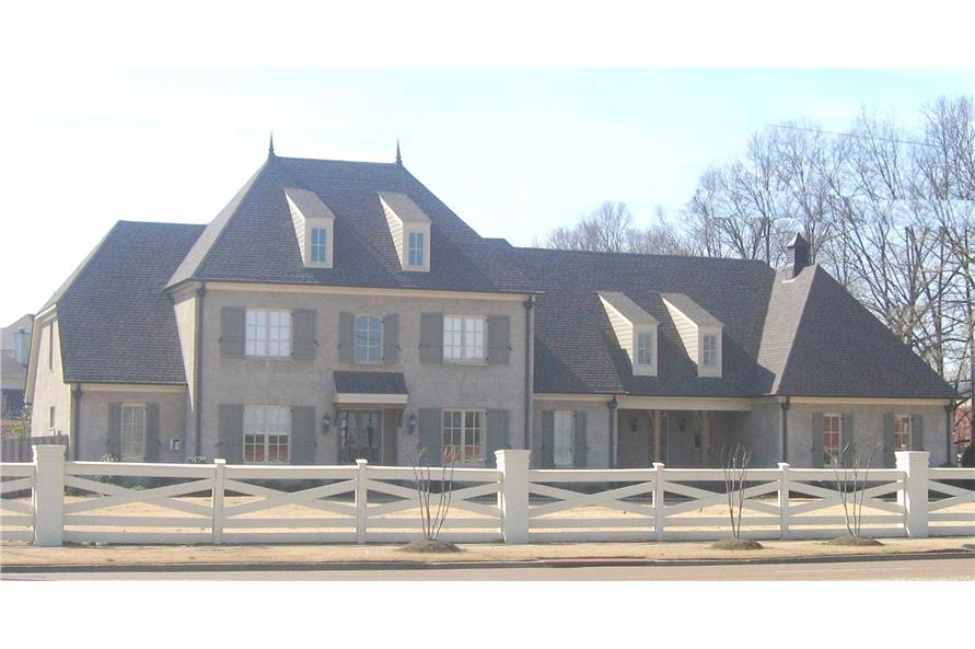 Wow, this French plan has a facade that will take your breath and it's hard to get it back. The covered porch and the uniquely narrow dormers adds to a long hip roof. The master bedroom has a big bathroom with two big walk-in closets on both ends. The first balcony on the second floor overlooks a staircase and the family room. There is another balcony that is above the great room. Then, you get three more bedrooms and three bathrooms.