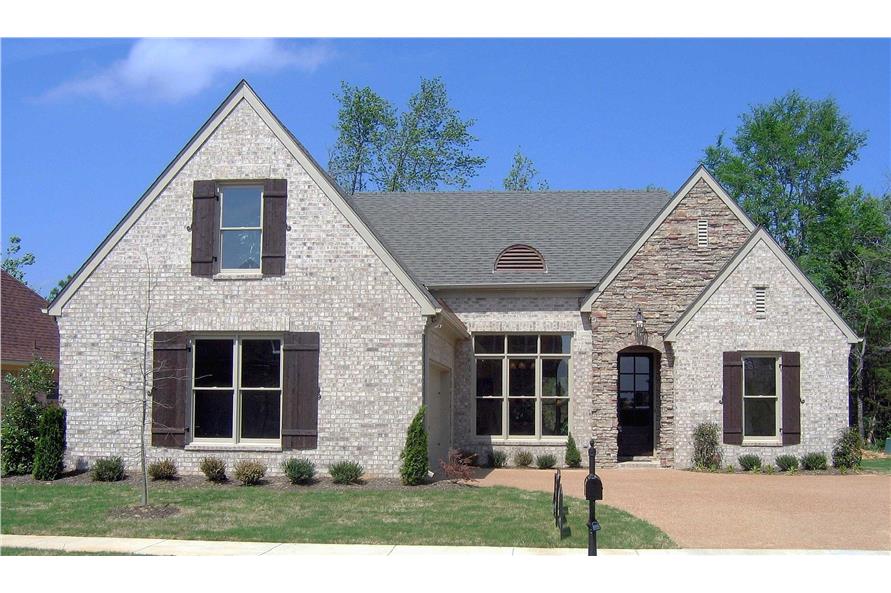 This French country plan has a stone entrance and brick around the rest of the home and the courtyard garage. The main floor covers all the basics of every day life. The second floor has a game room and a large attic.