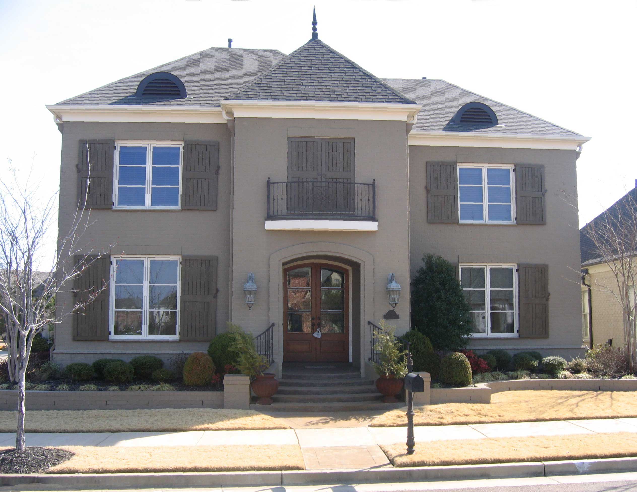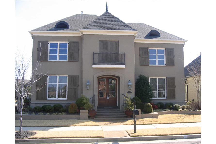 The fake balcony over the front door is a subtle touch that makes this French country home stick out from all the others. The main floor has a foyer that can be viewed from a real balcony on the second floor. The family room and kitchen are in one open area. The family room shares a two-way fireplace with the sun room on the back.